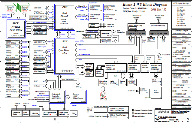 Lenovo Thinkpad W540 Wistron Kome-1 WS 12291-1 Bios, Schematic, Boardview
